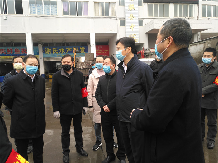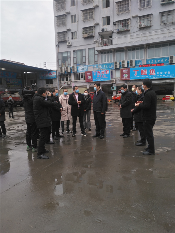 我公司是遂寧市政府確定的“新冠肺炎”疫情防控物資重點保供企業(yè)之一。2月7日上午,遂寧市委邵革軍書記 市府鄧正權市長、市農業(yè)農村局徐建軍局長等一行親臨我公司,檢查“新冠肺炎”疫情防控期間市場農副產品的準備及供應情況。當看到我公司“活禽生豬集中交易定點屠宰市場”和水產品批發(fā)市場保持了正常生產、經營,有效保證了市場供應時,邵革軍書記和鄧正權市長非常滿意,對我公司豬肉儲備充足且能夠完全滿足市場需求的情況給予了充分肯定,并高度贊揚我公司為穩(wěn)定市場,保障市民生活所需做出了積極貢獻。
