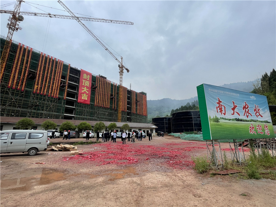 新建封頂?shù)哪洗筠r(nóng)牧公司是四川省遂寧市南大食品有限公司全額出資的子公司。投資1.5億元,種豬場采用立體養(yǎng)殖樓房設(shè)計(jì),層高5米,主樓8層樓高,建筑面積40000余平米。項(xiàng)目占地80畝,流轉(zhuǎn)土地2000畝。建成后年出欄生豬達(dá)12萬頭。
